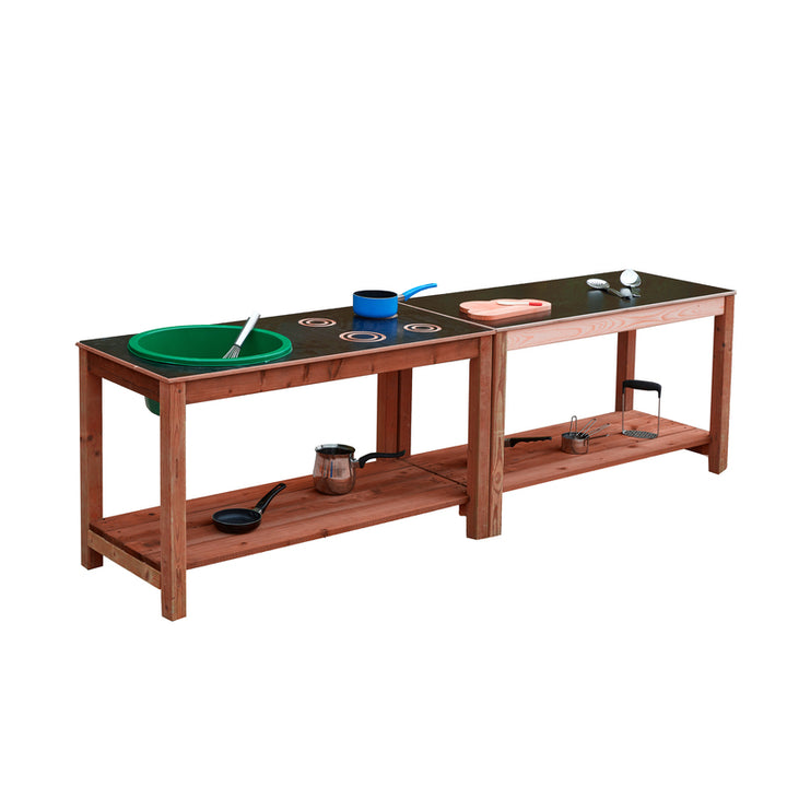 Designed for imaginative play on a budget, this compact and durable set is perfect for creating mud pies, puddle tea, and all sorts of messy masterpieces. With plenty of space for collaborative fun, it’s ideal for both small gardens and larger mud kitchen setups.