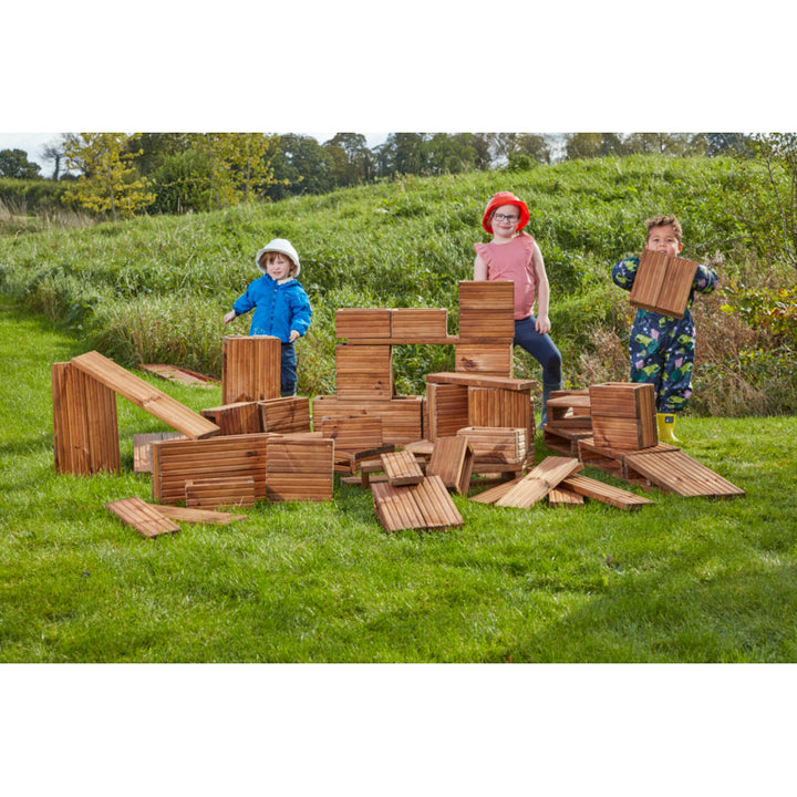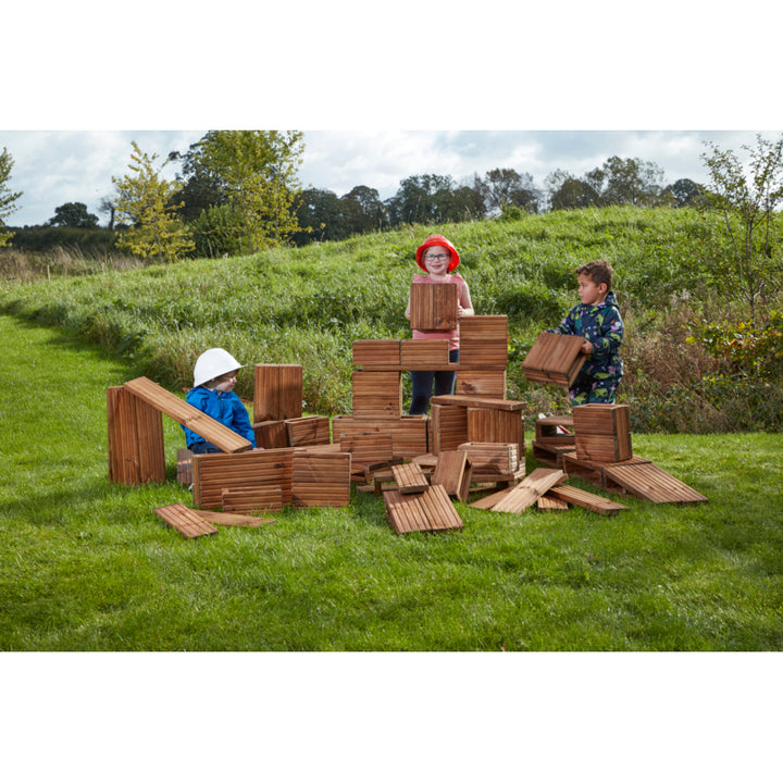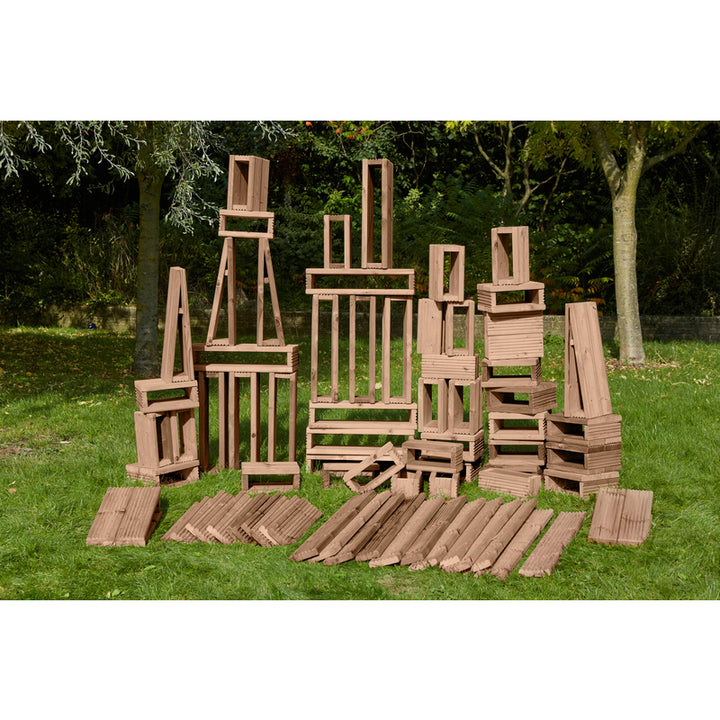This set of wooden blocks, designed for builders of all ages, is perfect for both indoor and outdoor play. The Deckciting Blocks Builders Yard Pack (75Pk) features an extensive selection of block sizes, allowing children to bring their imaginative ideas to life. Whether building alone or with others, there are plenty of pieces to go around.