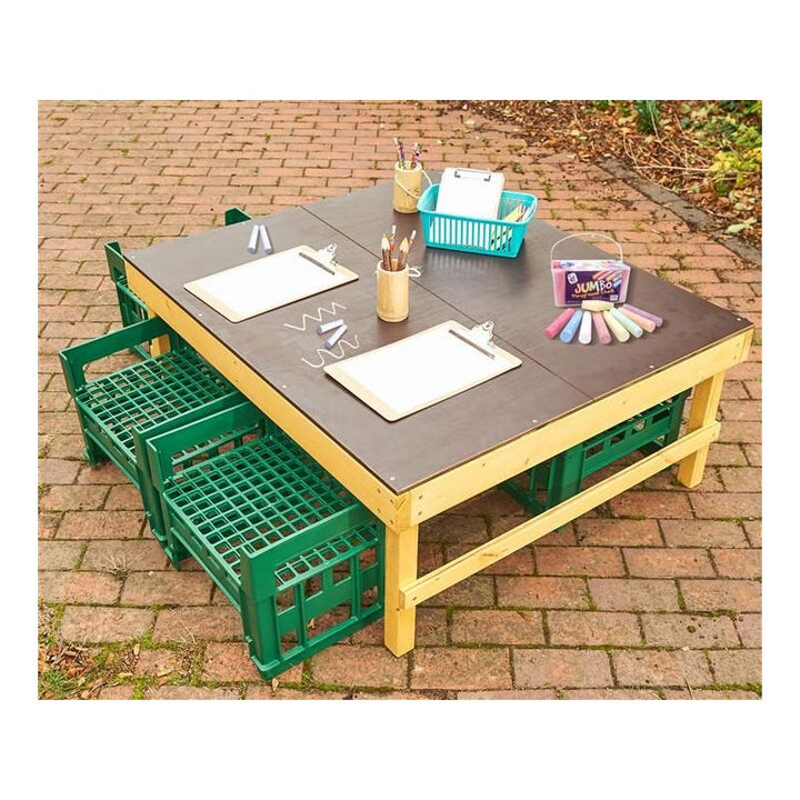 - Equipped with four H crates seats, this table offers versatile additional seating, making it ideal for group activities and imaginative play.